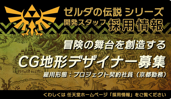[採用情報]プロジェクト採用情報に「『ゼルダの伝説』シリーズの3DCGデザイナー(地形)」(京都勤務)の募集要項を掲載しました。 https://t.co/y8dXTzXZI1 https://t.co/XUmmQCUijW