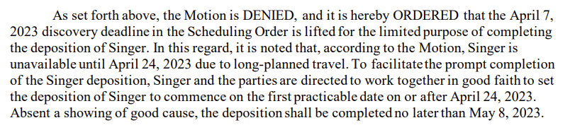 原告代理人は任天堂の弁護士にSinger Subpoenaの送達を受けるよう依頼した。