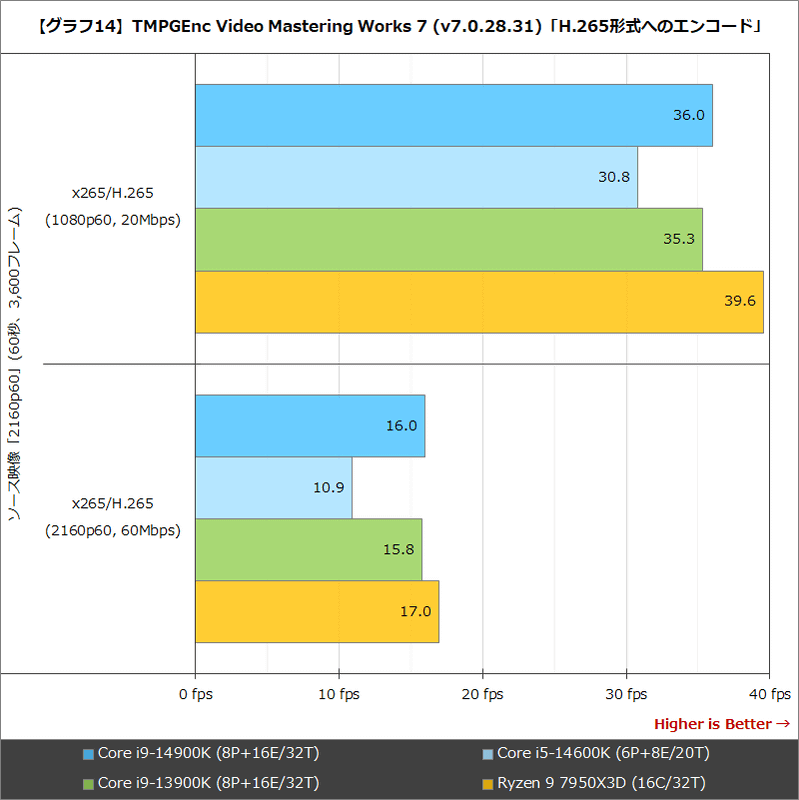 動画エンコードだと16コアの7950XよりPコア8しかない14900kに3倍差をつけられてるんですがそれは