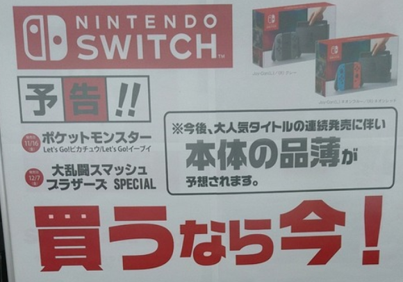 ゲオ「今後Switchは本体の品薄が予想されます。買うなら今!」 2018年11月03日 カテゴリ:ハード情報 【ゲオ「今後Switchは本体の品薄が予想されます。買うなら今!」】の続きを読む タグ :#ゲオ#ニンテンドースイッチ
